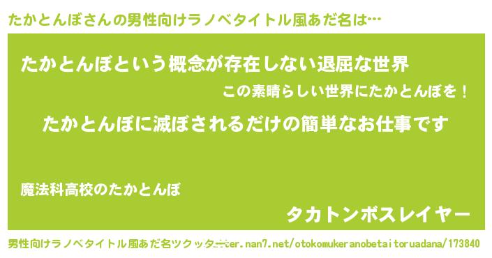 | 伝説のあだ名 | 『古文書に記された吟遊詩人たかとんぼ』 |