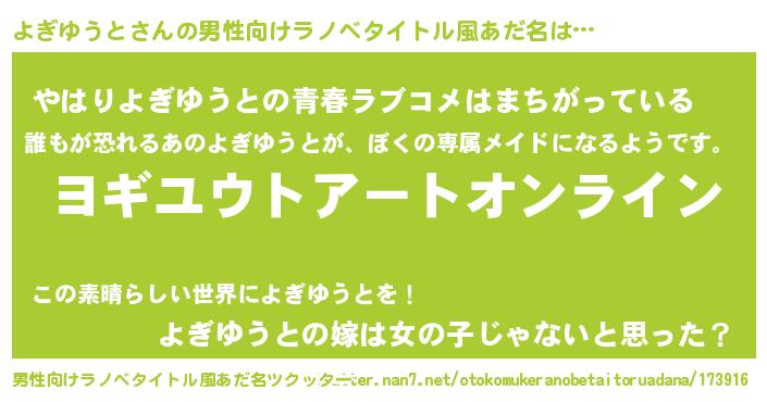| ファンタジー風あだ名 | 『ヨギフェル』『エターナルヨギユウトー』 |