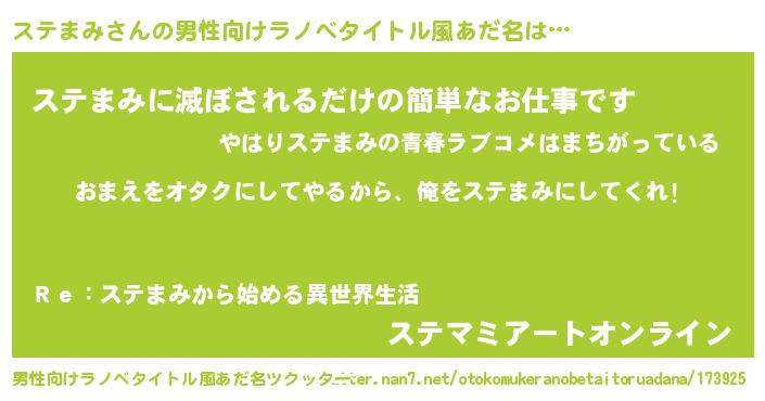 | 肩書あだ名 | 『ステまみ助教授』『ステまみ御曹司』 |