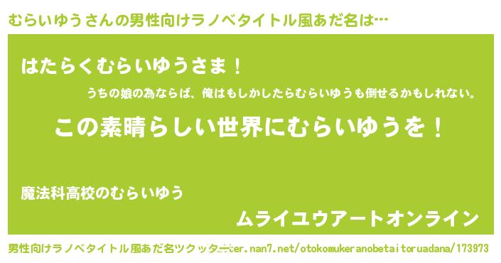 | 意味不明あだ名 | 『住所不定無職むらいゆう(1歳)』 |
