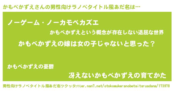 | 女子向けラノベタイトル風あだ名 | 『かもべかずえ様がみてる』 |