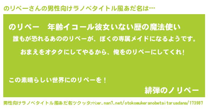 | 女子向けラノベタイトル風あだ名 | 『のリペー恋絵巻』 |