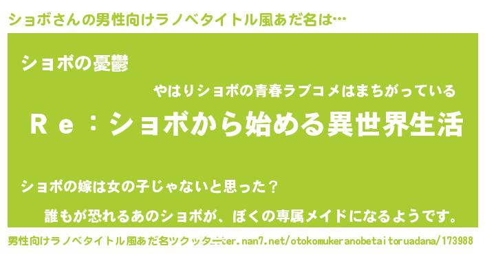 | 女子向けラノベタイトル風あだ名 | 『闇のショボ』『ショボ姫と円卓の騎士』 |