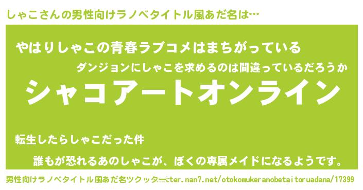 | ヘコむあだ名 | 『しゃにー』『なまこ酢』『しゃっぺ』 |