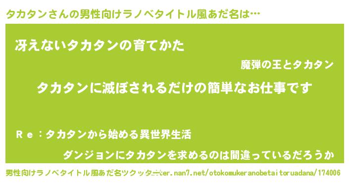 | 意味不明あだ名 | 『とにかく怪しいタカタン』 |