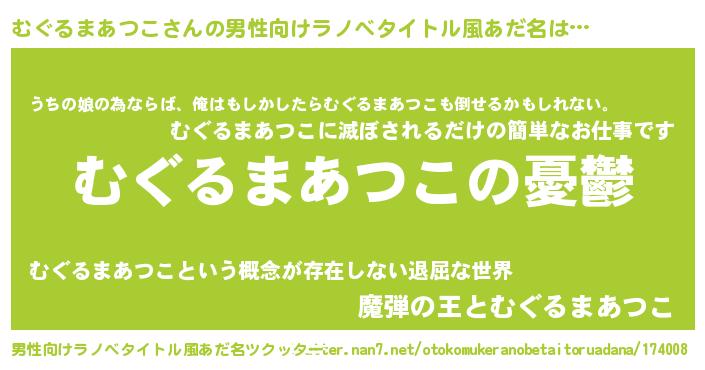 | 胡散臭い通販商品みたいなあだ名 | 『モテモテ間違いなし水晶球…その名も「むぐるまあつこ」』 |