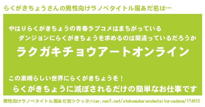 | 胡散臭い通販商品みたいなあだ名 | 『億万長者になれるブレスレット…その名も「らくがきちょう」』 |
