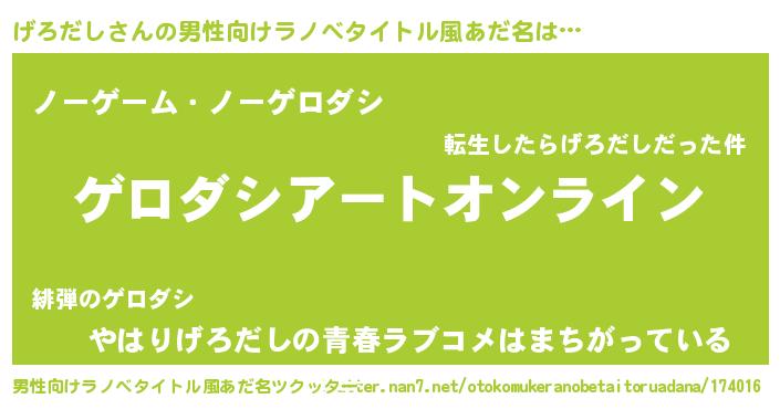 | 胡散臭い通販商品みたいなあだ名 | 『億万長者になれる霊験あらたかなお札…その名も「げろだし」』 |