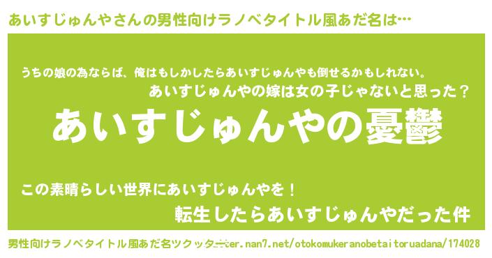 | 胡散臭い通販商品みたいなあだ名 | 『必ず成功するブレスレット…その名も「あいすじゅんや」』 |