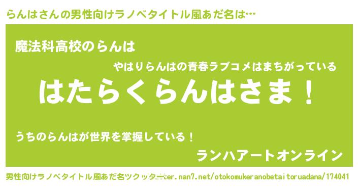 | 欧米人風あだ名 | 『アンジェラ・らんは』『マイケルらんは』 |