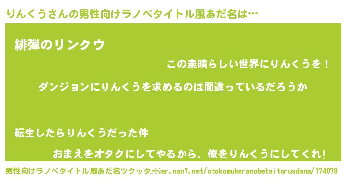 | 意味不明あだ名 | 『とにかく怪しいりんくう』 |