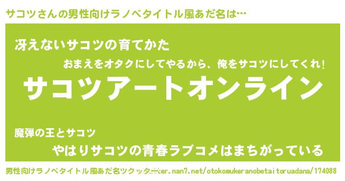 | 胡散臭い通販商品みたいなあだ名 | 『モテモテ間違いなしブレスレット…その名も「サコツ」』 |