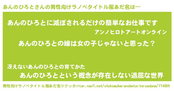 | 伝説のあだ名 | 『覚醒した遊び人あんのひろと』 |