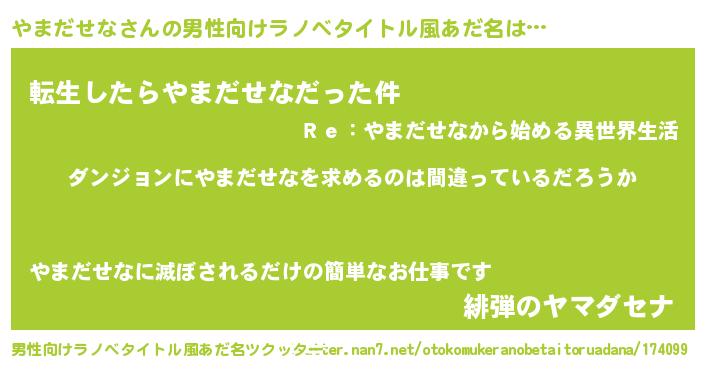 | 女子向けラノベタイトル風あだ名 | 『やまだせなは平凡を望む』 |