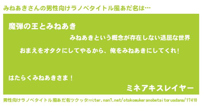| ヒーロー風カッコイイあだ名 | 『友情の使者みねあき』『仮面ミネダー』 |