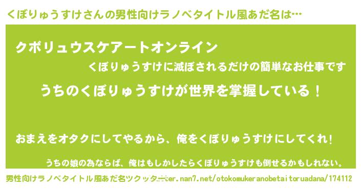 | 女子向けラノベタイトル風あだ名 | 『男装くぼりゅうすけの憂鬱な任務』 |