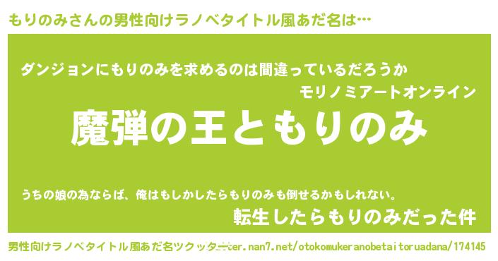 | 胡散臭い通販商品みたいなあだ名 | 『ハリウッド女優が絶賛した100年もののヴィンテージワイン…その名も「もりのみ」』 |