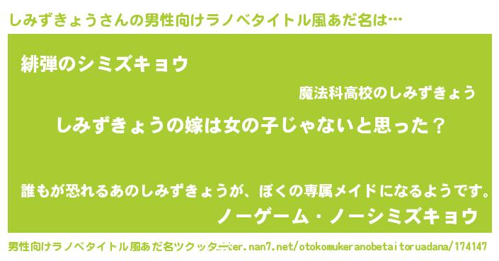 | 意味不明あだ名 | 『とにかく怪しいしみずきょう』 |