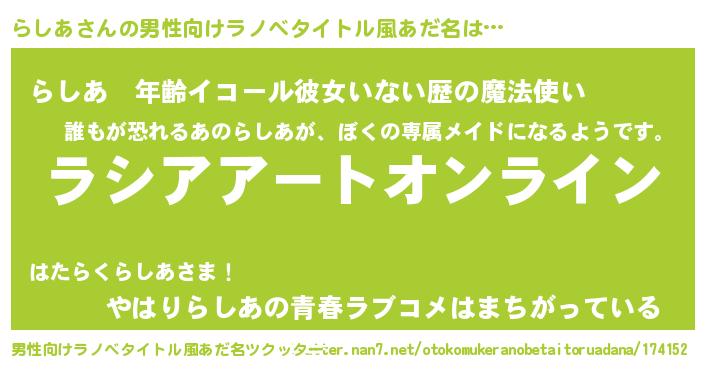 | 胡散臭い通販商品みたいなあだ名 | 『モテモテ間違いなし水晶球…その名も「らしあ」』 |