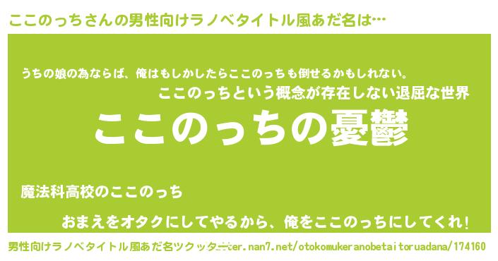 | 女子向けラノベタイトル風あだ名 | 『ここのっち姫と円卓の騎士』 |