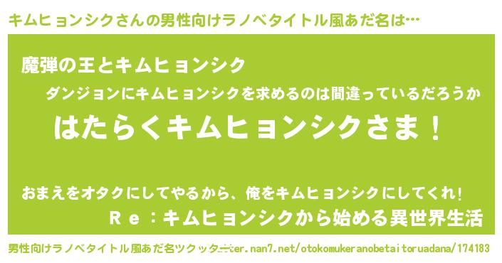 | 意味不明あだ名 | 『住所不定無職キムヒョンシク(10歳)』 |