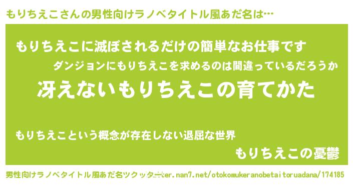 | 胡散臭い通販商品みたいなあだ名 | 『モテモテ間違いなしブレスレット…その名も「もりちえこ」』 |