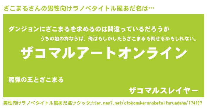 | 女子向けラノベタイトル風あだ名 | 『ざこまる姫と円卓の騎士』 |
