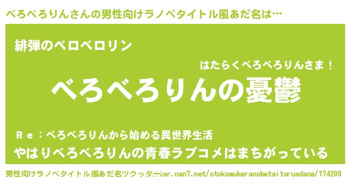 | 胡散臭い通販商品みたいなあだ名 | 『必ず成功する霊験あらたかなお札…その名も「べろべろりん」』 |