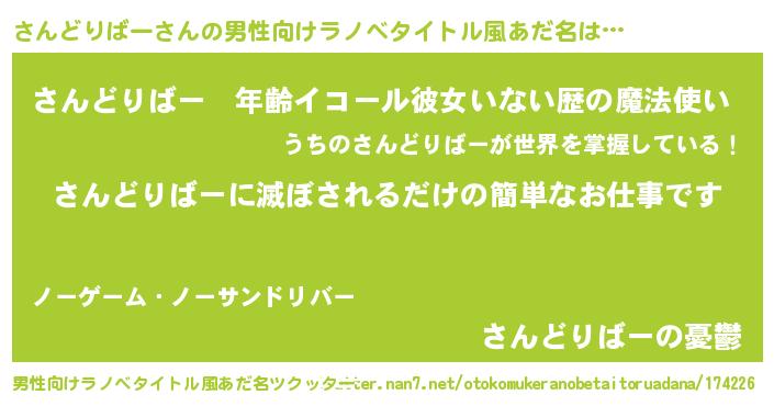 | 欧米人風あだ名 | 『アンジェラ・さんどりばー』 |