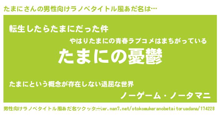 | 女子向けラノベタイトル風あだ名 | 『(仮)たまにのやんごとなき事情』 |
