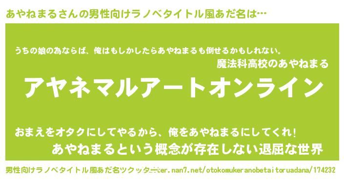 | ファンタジー風あだ名 | 『アヤフェル』『エターナルアヤネマルー』 |