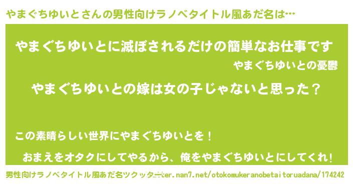 女子向けラノベタイトル風あだ名 | 『やまぐちゆいと様がみてる』 |