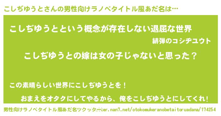 | 女子向けラノベタイトル風あだ名 | 『こしぢゆうとの卵を拾いまして』 |