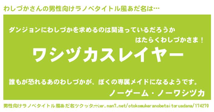| 胡散臭い通販商品みたいなあだ名 | 『信頼と実績のペンダント…その名も「わしづか」』 |