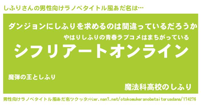 | 胡散臭い通販商品みたいなあだ名 | 『億万長者になれるブレスレット…その名も「しふり」』 |