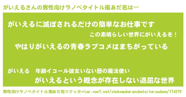 | 女子向けラノベタイトル風あだ名 | 『がいえるの雑貨屋さん』 |