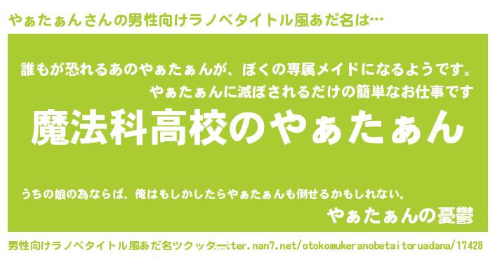 | 意味不明あだ名 | 『自称やぁたぁん』『永久保存やぁたぁん』 |