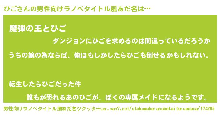 | ヘコむあだ名 | 『酢こんぶ』『ひご(苦笑)』『ひごお』 |