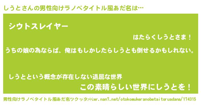 | 胡散臭い通販商品みたいなあだ名 | 『運命の人と巡り会える高級そうな絵画…その名も「しうと」』 |