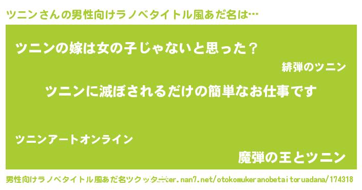 | ヘコむあだ名 | 『ツニお』『ツニにー』『牛乳』 |