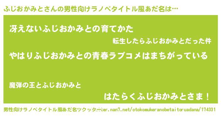 | 女子向けラノベタイトル風あだ名 | 『ふじおかみとの雑貨屋さん』 |
