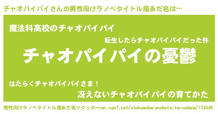 | 女子向けラノベタイトル風あだ名 | 『チャオパイパイ姫と円卓の騎士』 |