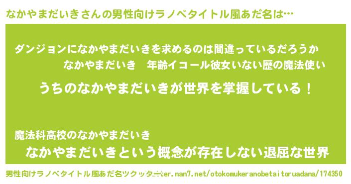 | 女子向けラノベタイトル風あだ名 | 『男装なかやまだいきの憂鬱な任務』 |