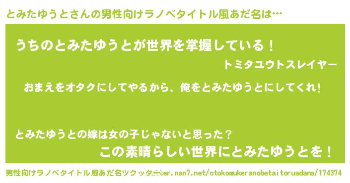 | 女子向けラノベタイトル風あだ名 | 『とみたゆうと夫妻のなれそめ』 |