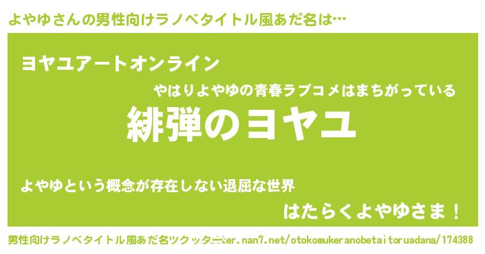 | 胡散臭い通販商品みたいなあだ名 | 『必ず成功する霊験あらたかなお札…その名も「よやゆ」』 |