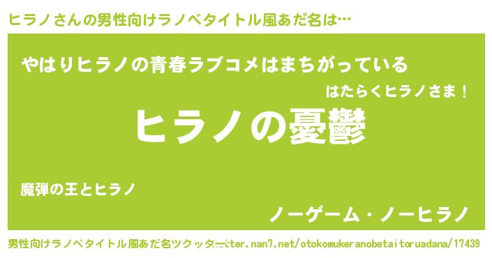 | 胡散臭い通販商品みたいなあだ名 | 『必ず成功するブレスレット…その名も「ヒラノ」』 |
