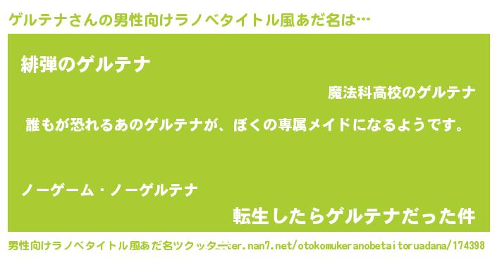 | 意味不明あだ名 | 『永久保存ゲルテナ』『自称ゲルテナ』 |