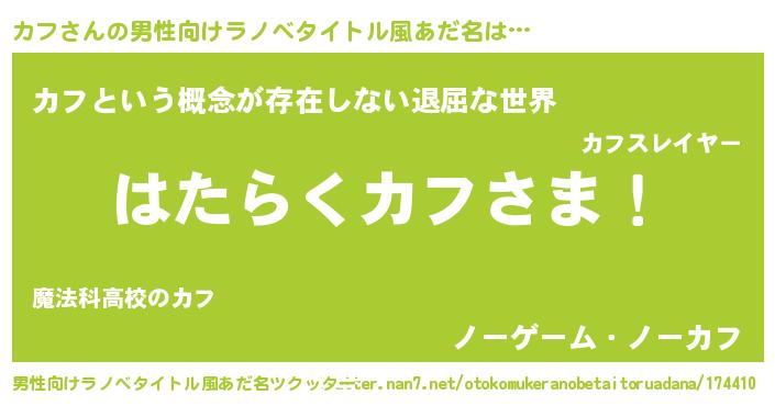 | 女子向けラノベタイトル風あだ名 | 『首の姫と首なしカフ』『カフ恋絵巻』 |