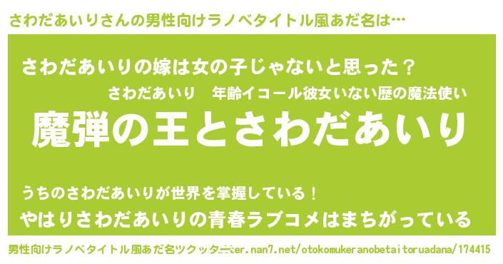 | 女子向けラノベタイトル風あだ名 | 『さわだあいりが死なない童話 林檎のさわだあいりの診療簿』 |