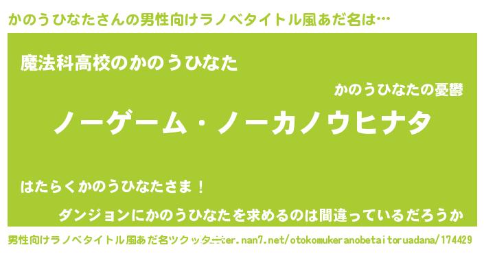 | 女子向けラノベタイトル風あだ名 | 『死神かのうひなたの再婚』 |
